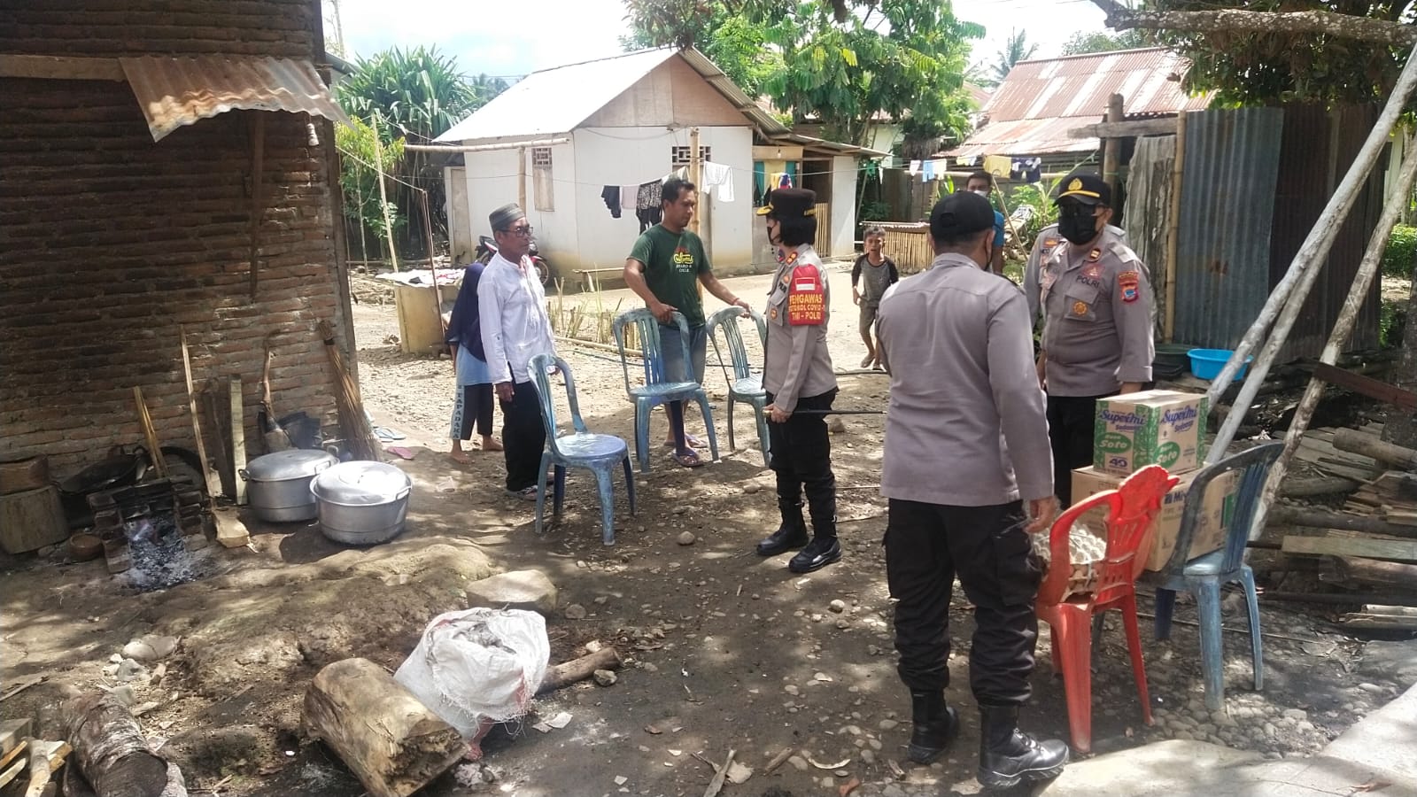 Di sana Kapolres menyampaikan rasa simpati dan empati kepada keluarga korban serta memberikan bantuan bahan Sembako.