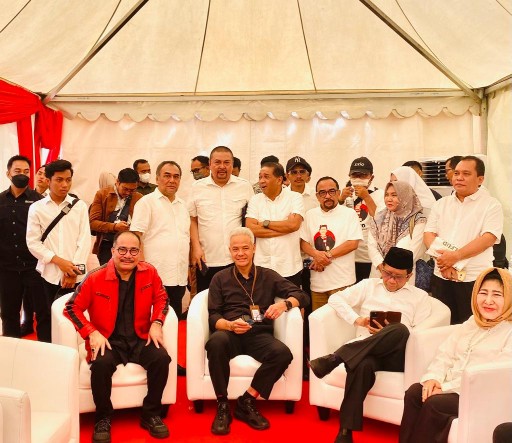 Para Ketua Umum (Ketum) dan Sekretaris Jenderal (Sekjen) Partai Politik (Parpol) yang mencalonkan Ganjar Mahfud menunggu di kawasan Teuku Umar, Menteng, Jakpus (Rumah Ketum PDI Perjuangan Hj. Megawati Soekarnoputri) untuk kemudian bertemu dan bergabung dengan Paslon Ganjar Mahfud dan rombongan yang datang dari Tugu Proklamasi, di Gedung Kantor KPU-RI. Ada Ketum PDI Perjuangan yang juga Presiden Kelima RI Hj. Megawati Soekarnoputri, Ketum PPP H.M. Mardiono, Ketum Partai Hanura yang juga mantan Ketua DPD-RI dan Wakil Ketua MPR-RI Oesman Sapta Odang, Ketum Partai Perindo Hary Tanoesoedibjo.***