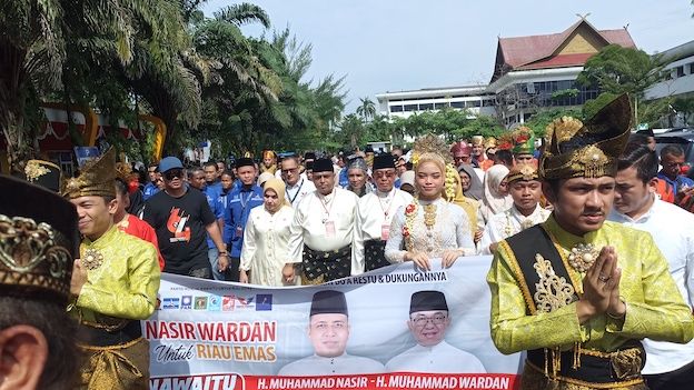 Ribuan massa pendukung pasangan Nasir - Wardan tampak menunggu dan meramaikan Jalan Gajah Mada Pekanbaru. Pendukung terdiri dari kader partai pengusung, relawan serta tim pemenangan.