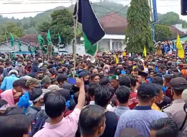 Aksi Unjuk Rasa, Ratusan Mahasiswa Demo di Kantor DPRD Kerinci Menolak UU Omnibus Law