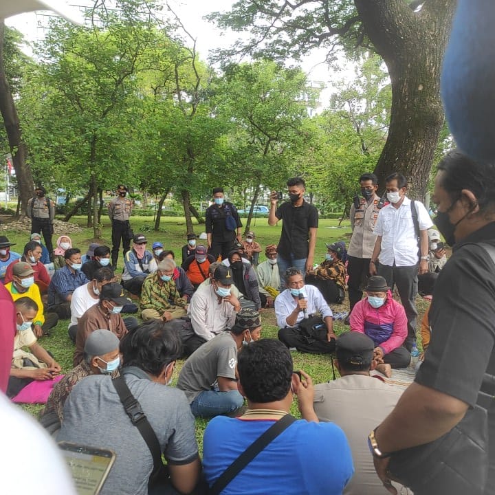 Gardametro.com | Jakarta – Tim Kantor Staf Presiden (KSP) menemui puluhan petani asal Kecamatan Cikedung Indramayu Jawa Barat, yang berunjuk rasa di kawasan selayang pandang tugu Monas Jakarta, Rabu (3/11). Kedatangan tim KSP untuk mendengar langsung aspirasi pengunjuk rasa.